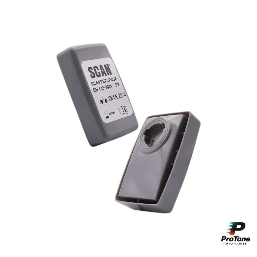 These Scan Twin Half Mask P3R Particle Filter Cartridges are suitable for use with the Scan SCAPPERESPMO 1/2 mask respirator and SCAPPERESPFF full face respirator. Used to protect against particles such as dust, smoke and aerosols. They filter out up to 99.95% of contaminants. The glass fibre and polyporpylene material ensure a high performance and reusable filter. Supplied as a pack of 2 filter cartridges. Conforms to EN 143:2021.